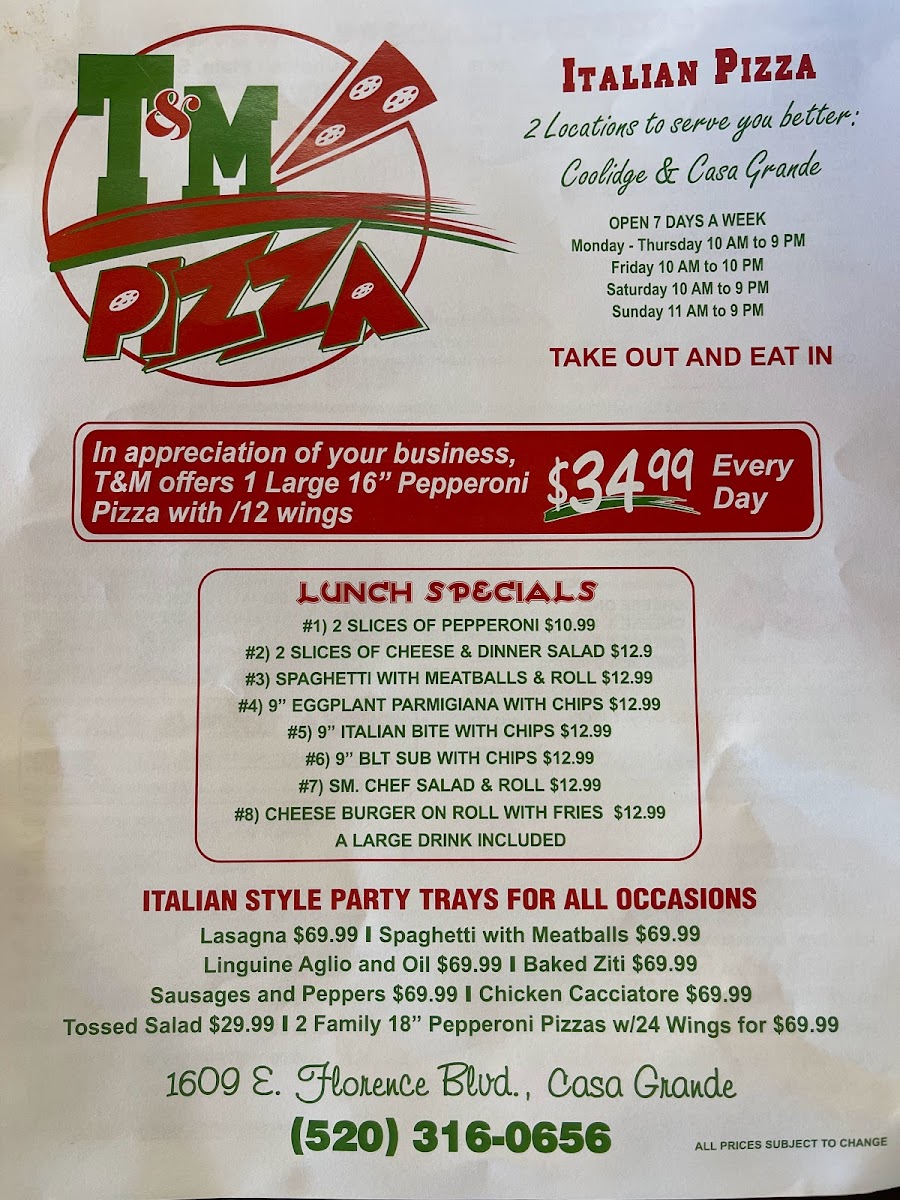 Visit T & M Pizza at 1609 E Florence Blvd, where deliciousness meets a welcoming atmosphere. Trust me, you'll be back for more!